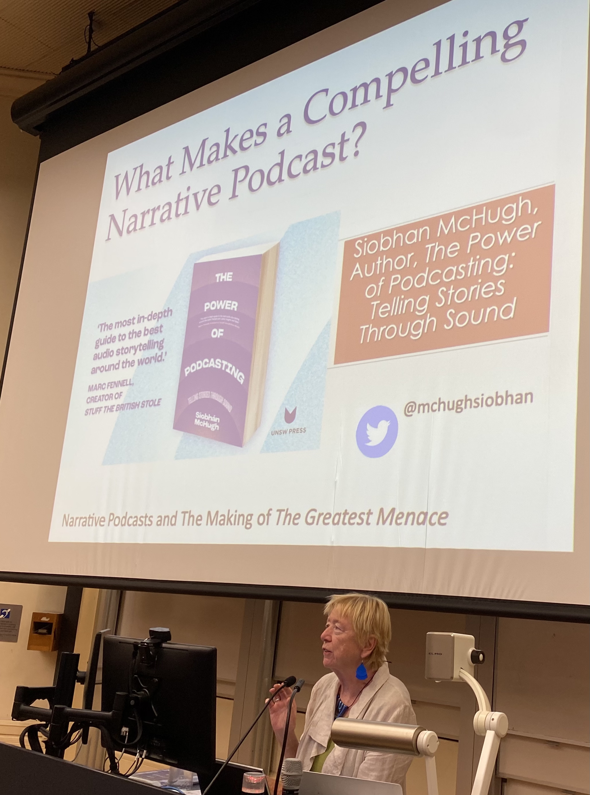 I’m also posting two recent in-depth interviews about my contemporary podcast-focused life – one with energetic US podcaster Florence Lumsden, host of The Format; and one with veteran Canadian audio producer and critic, Samantha Hodder, whose excellent blogs are at Bingeworthy. Both had me reflect in new ways on audio storytelling and my intersections with it as academic, producer, critic and advocate.