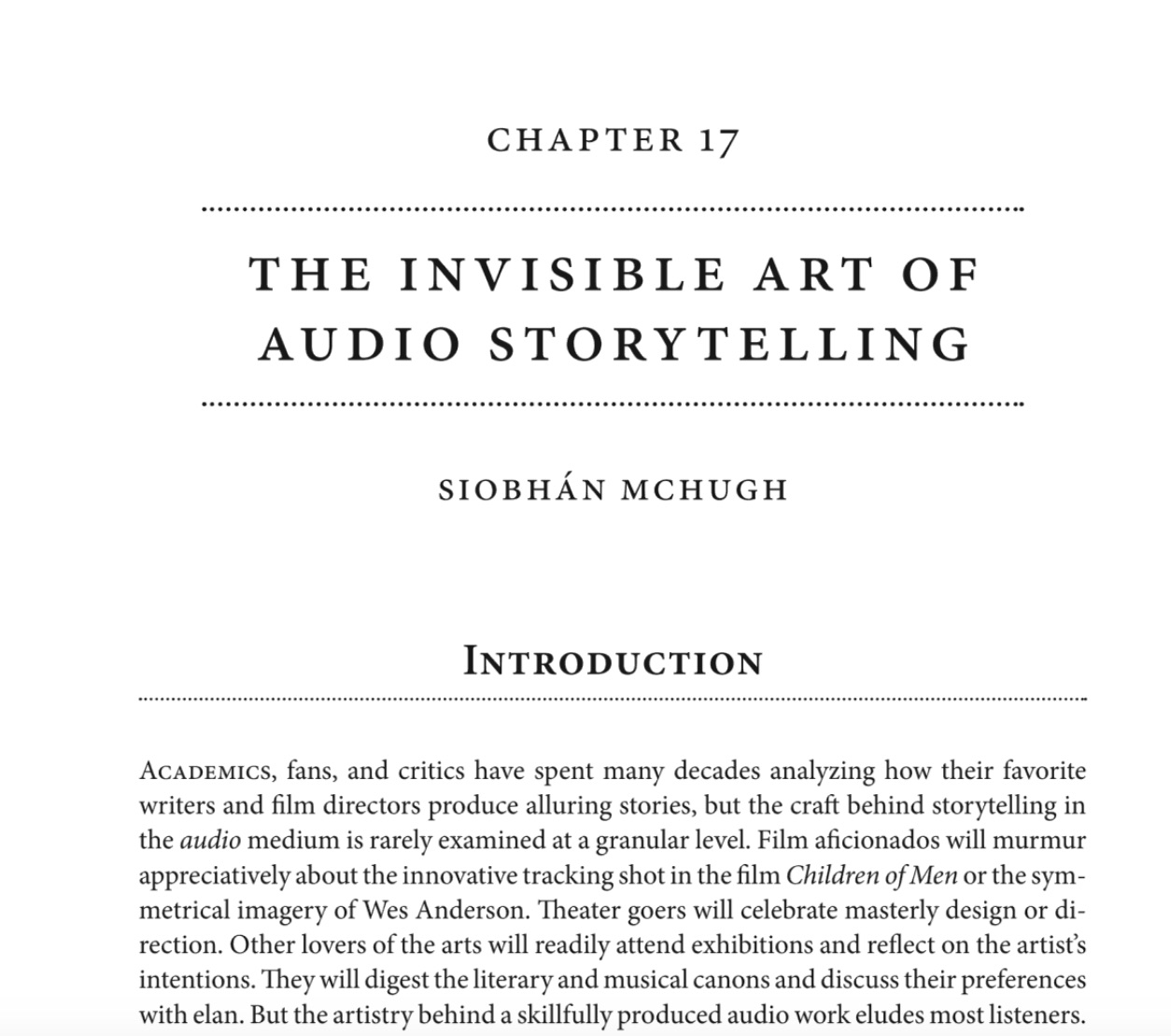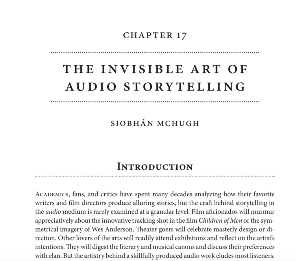 Hard to describe this book: it’s a crazily ambitious attempt at a cultural survey and critical analysis of podcasting as a new medium, that’s also a ‘creative confessional’, replete with insider takes on the artistic and editorial side of crafting podcasts, plus a homage to the global audio storytelling community, old and new. Here’s the sell.