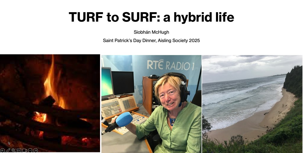 But this post is dedicated to my 40th anniversary in Oz. I was honoured to be the speaker at the annual Saint Patrick’s Day Dinner of the Aisling Society, a group formed 70 years ago in Sydney to nurture cultural and historical aspects of the Irish-Australian tradition. It was a perfect opportunity to reflect on the major societal changes I’ve witnessed in that time, in both countries. I reproduce my talk below (I’ve linked to archival audio clips I used.)