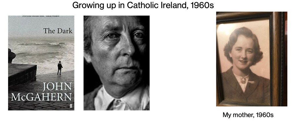 Some of our writers called it out: John McGahern, banned, his novel, The Dark, hidden in my mother’s wardrobe. And I should say here that while I would go on to loathe the abuses of power wielded by the Church hierarchy, I’ve managed to retain affection for some of the cultural rituals that formed what John McGahern beautifully described as the ‘sacred weather’ of a Catholic childhood.