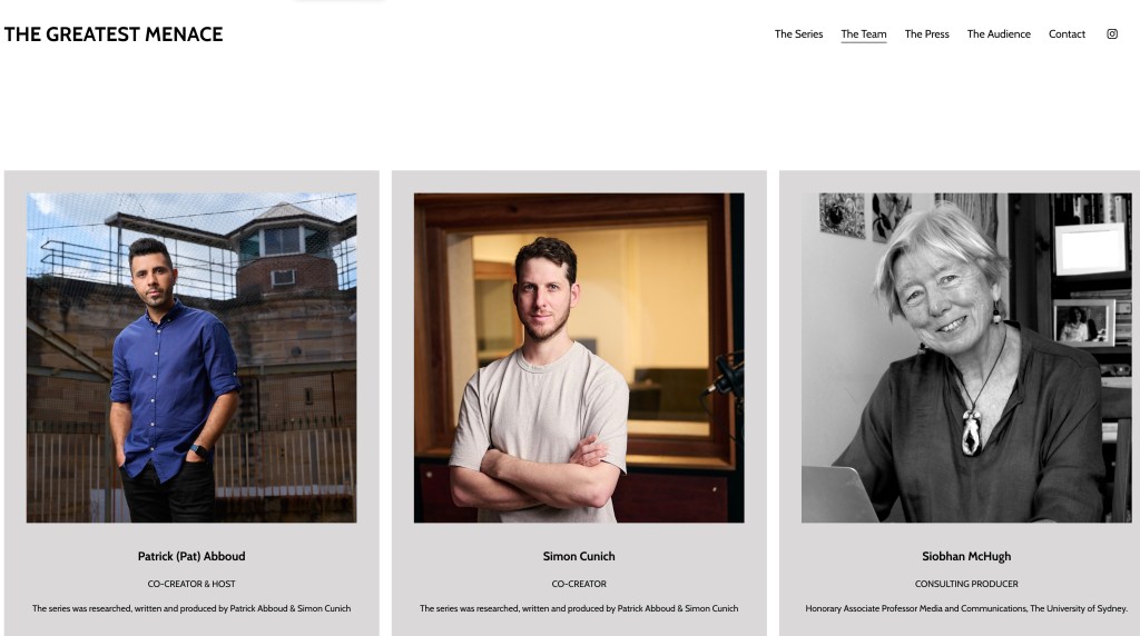 The medium has since matured and I’ve been very involved in making premium narrative podcasts, serialised stories created as a limited run. I spent two years as consulting producer on a wonderfully complex podcast, The Greatest Menace. At one level, it’s queer history/true crime, an investigation of what we believe was the world’s only gay prison, established in a country town in Australia in 1957, to explore ’causes and treatments of homosexuality’: in other words, use gay men as lab rats. At another level, it’s deeply moving personal storytelling, as host Patrick Abboud, of Palestinian-Lebanese background, navigates the never-ending difficulties of being an out gay man in a homophobic Arab-Australian community. This podcast, a FREE listen on Audible, wears its rigorous research lightly, but its artistry and heft have been recognised with 15 awards.